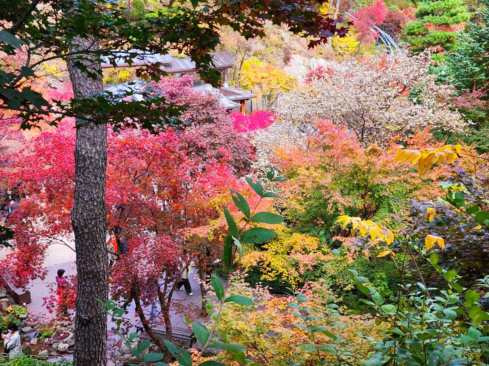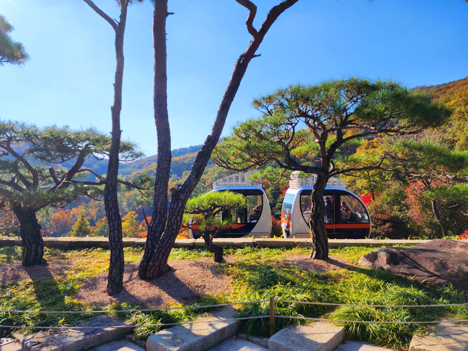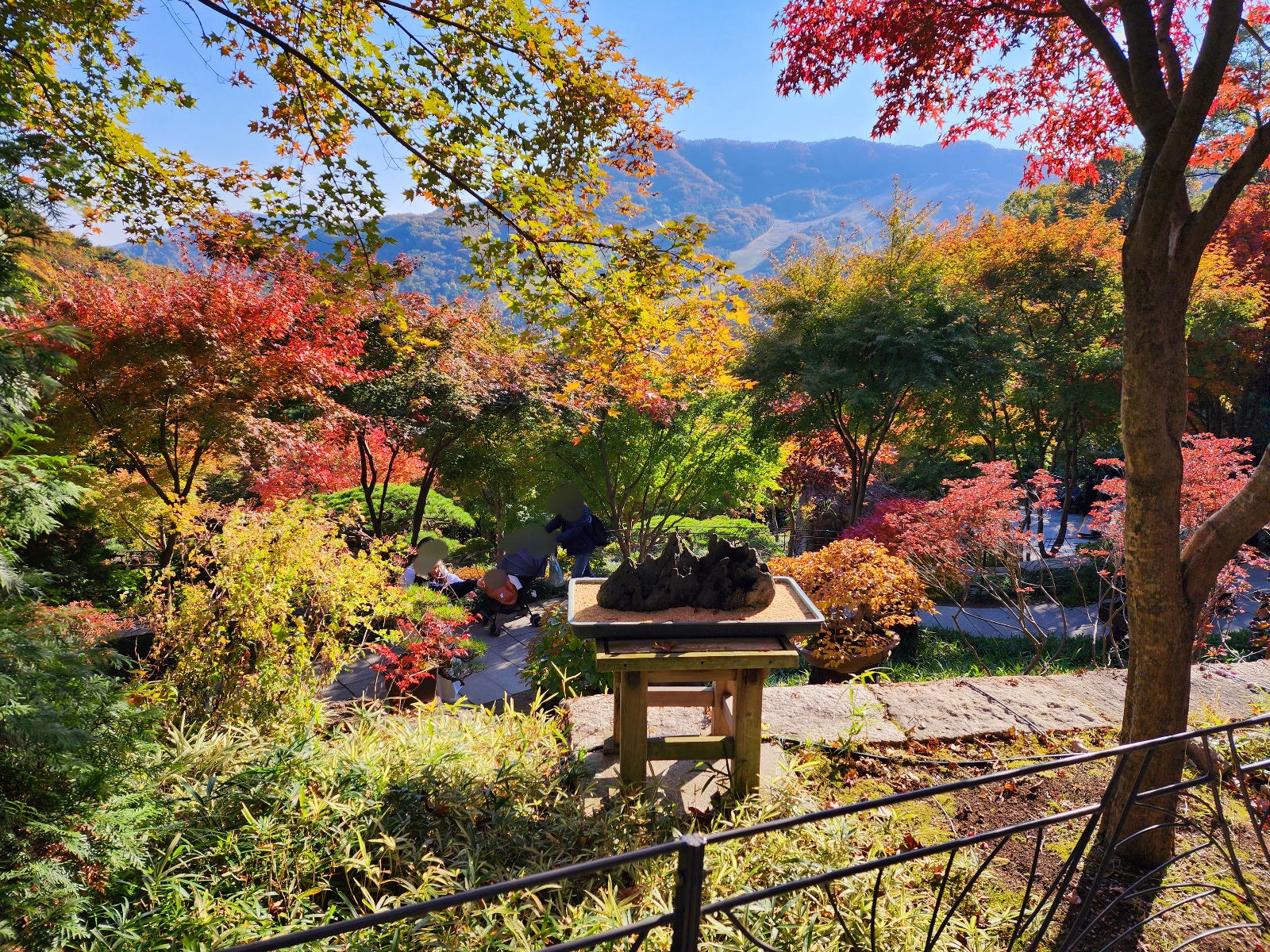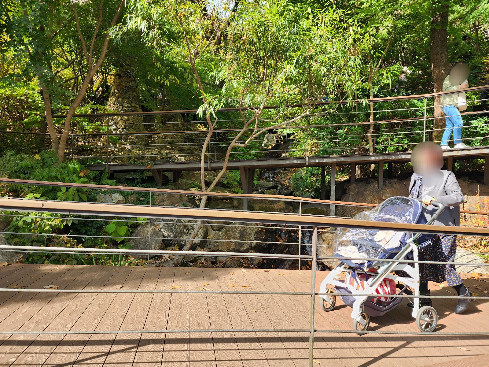 별로 기대하지 않았던 곳인데, 생각보다 괜찮았던 소나무 정원이었습니다. 여기에 3승강장이 있으니 힘드신 분들은 3번→1번은 모노레일 탑승을 하시면 좋을 것 같아요. 본격적인 내리막길이라 유모차로 다니기에는 체력소모가 어마어마합니다. 볼거리도 분재와 국화라서 크게 감동적이지도 않으니, 그 시간으로 다시 돌아간다면 저는 무조건 타고 내려갈 거예요.