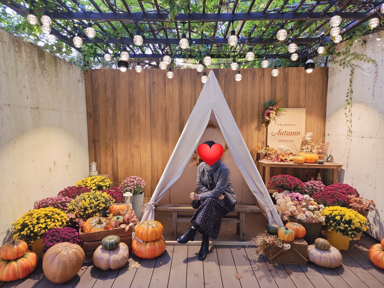 화담숲은 끝으로 갈수록 아기자기한 포토존들이 많아서 좋았습니다. 작지만 핑크뮬리 밭도 있고, 국화꽃 정원도 있었어요. 거의 마지막이라 사람들도 지쳐서 그런가 포토존 경쟁이 치열하지도 않습니다.