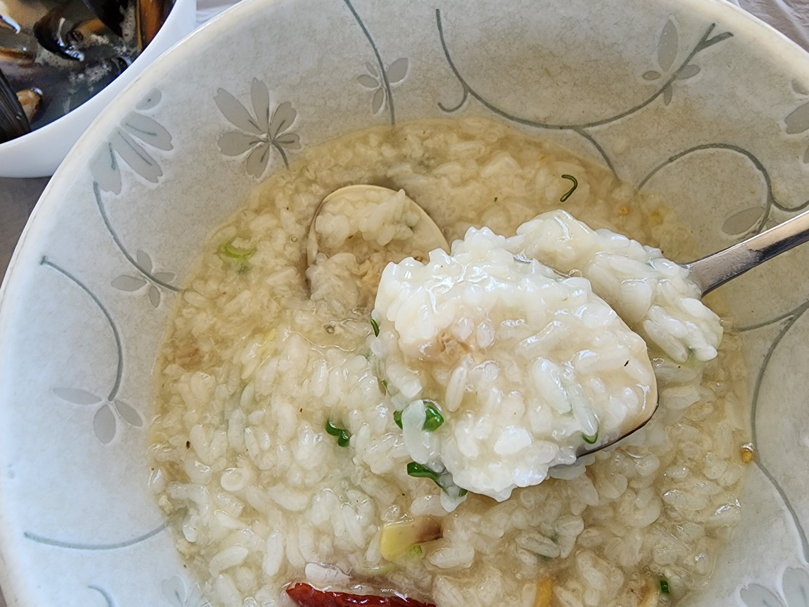 백합은 잘게 으깨져서 잘 보이진 않습니다. 죽 안쪽에 조개껍데기가 들어있었어요. 백합죽은 2인 기준 24,000원입니다. 원래 20,000원이었는데 요새 물가가 무섭게 오르다 보니, 음식값 안 올린 식당이 드문 것 같습니다.