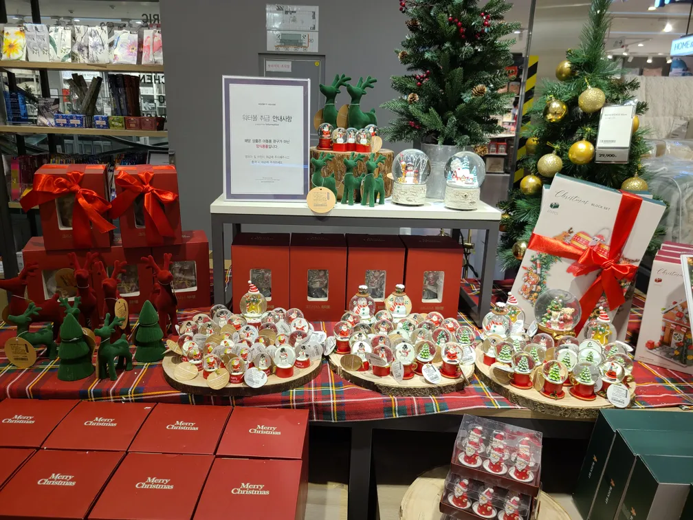 오프라인 매장은 크리스마스 분위기가 한껏 느껴져서 좋았습니다. 귀여운 인테리어 소품이 많아서 보는 재미가 쏠쏠했어요. 나중에 아이가 크면 침대 근처에 양말 하나 걸어주면 좋아하지 않을까 싶어요.