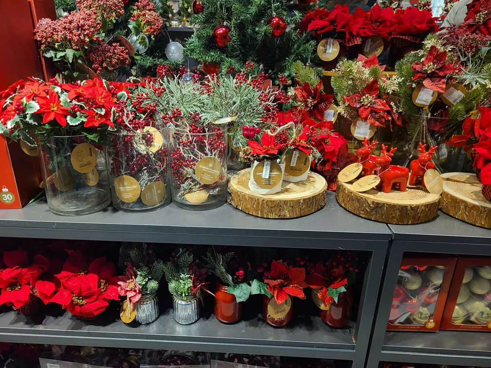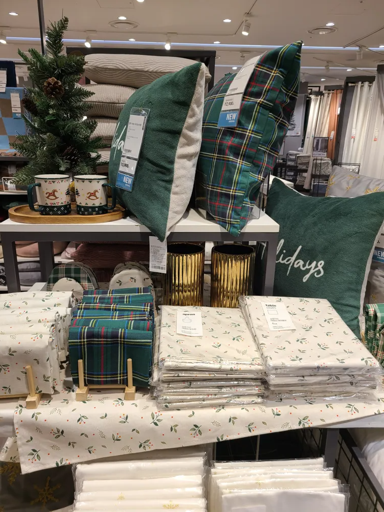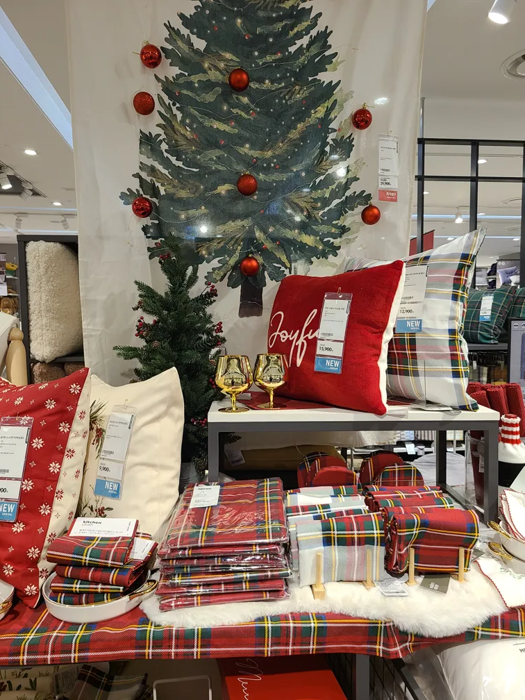 강렬한 빨간색의 포인세티아 조화도 하나쯤은 집에 가져가고 싶었습니다. 하지만 이건 내년에 사기로 다짐했습니다. 크리스마스 소품은 매년 조금씩 사서 모으는 재미가 있거든요. 작년에는 리스와 솔방울 전구 장식을 샀고, 올해는 그릇과 쿠션 커버를 샀습니다. 크리스마스를 보낼수록 점점 집이 화려해지는 것 같습니다.