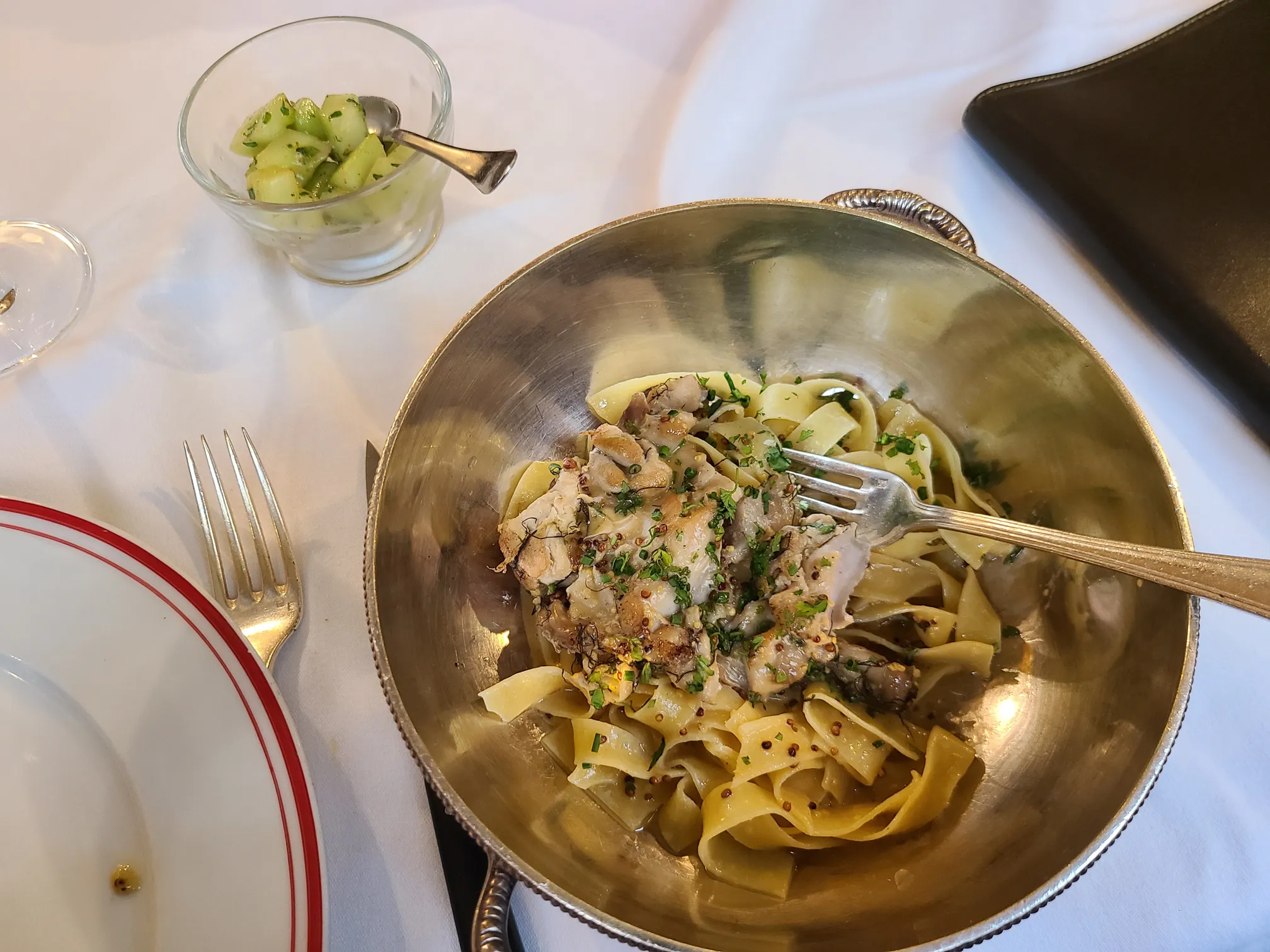 두 번째 메인 요리인 토끼고기를 곁들인 파스타입니다. 파스타 위에 놓인 토끼고기 스테이크를 옆의 접시에 놓고 썰어 드시면 됩니다. 개인적으로 토끼고기는 처음 먹어보는데 담백하고 아주 깔끔했습니다. 생면 파스타 또한 아주 맛있었습니다.