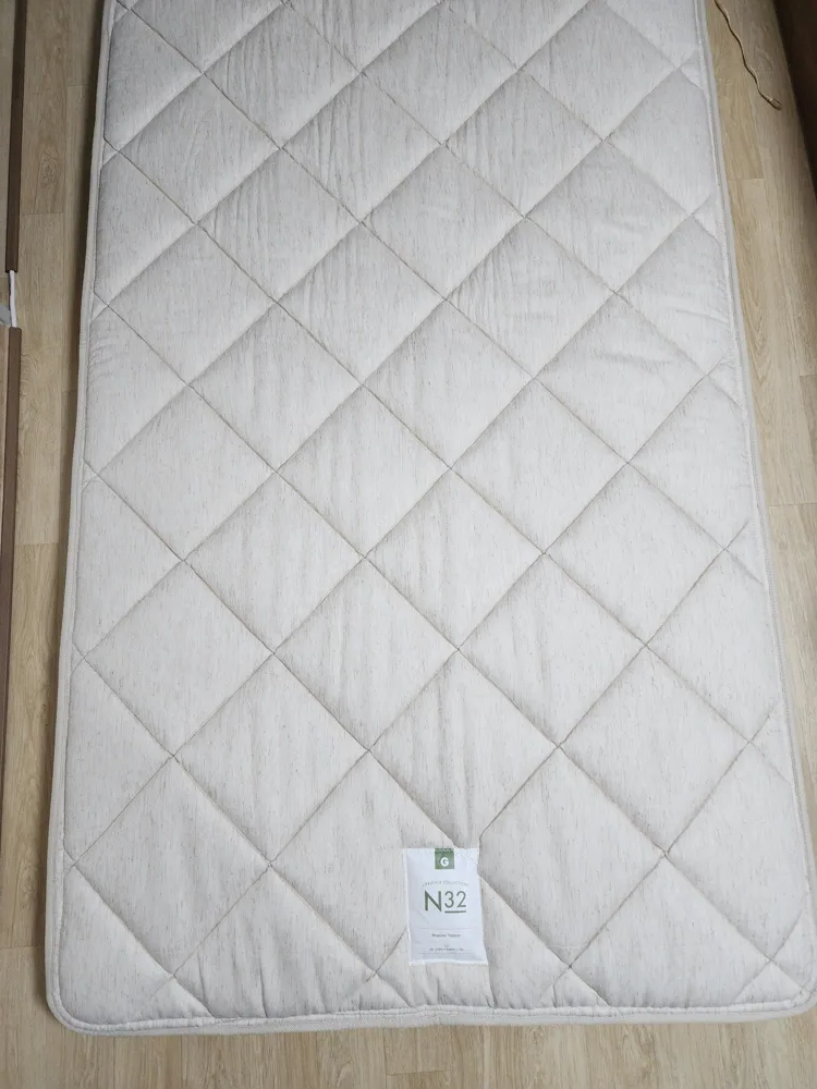 방수 슬리브를 별도로 판매하지 않고 제품에 포함시킨 것도 N32 토퍼의 장점인 것 같습니다. 토퍼에 방수슬리브를 씌우고 패드를 깔아서 쓰다가, 요즘은 온수매트를 올려서 쓰고 있습니다. 토퍼에 온수매트를 올리면 폼이 딱딱하게 굳어지는 경화 현상을 촉진시켜 좋지 않다고 알려져 있긴 합니다. 그래도 아기가 좀 더 크면 방을 분리하고 키즈 침대를 마련해 줄 예정이라, 아주 오래 쓸 것 같지는 않거든요.