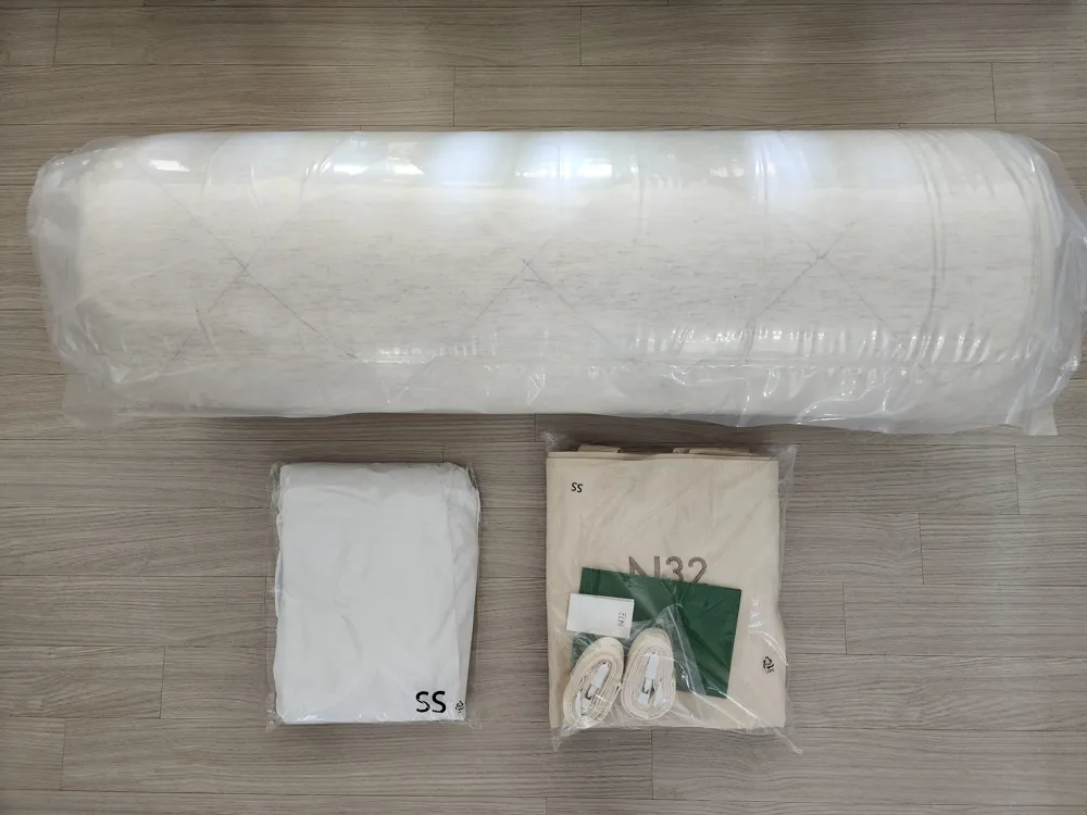 생각보다 택배 부피가 작았습니다. 그렇지만 무게는 상당히 무거웠습니다. 혼자서 낑낑대며 끌고 들어오긴 했지만 정말 힘들더군요. 언박싱을 해보니 토퍼가 돌돌 말린 상태로 비닐 포장이 되어 있었습니다. 사진 왼쪽 아래에 있는 것은 방수 패드, 오른쪽에 있는 것은 토퍼 보관용 파우치와 보증서입니다. 토퍼는 3단으로 접어서 끈으로 고정시킨 다음에 파우치에 넣으면 됩니다. 친척집에 놀러 간다거나 차박, 캠핑을 갈 때 유용할 것 같습니다.