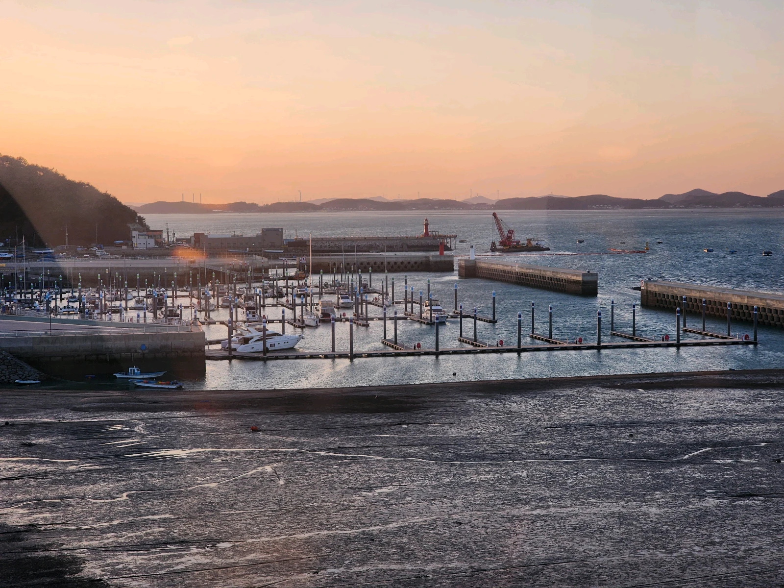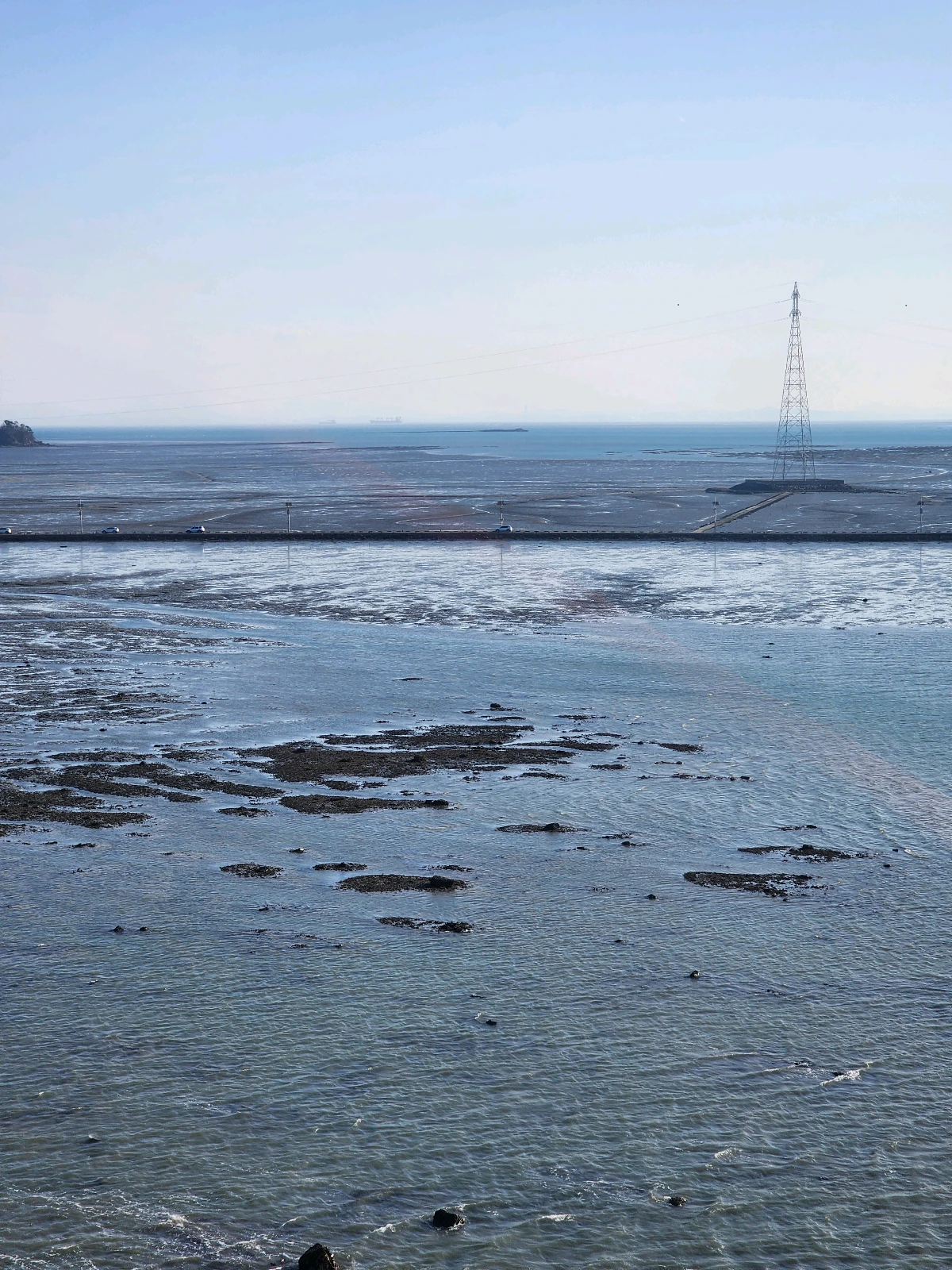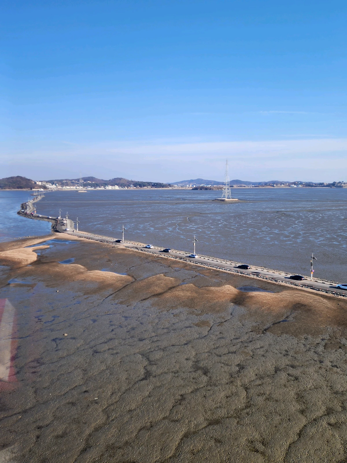 물이 완전히 빠져서 갯벌이 훤히 보입니다. 날씨가 워낙 좋은 날이라 바다가 아니더라도 참 예쁜 풍경이었어요. 하늘은 점점 주황빛으로 물들기 시작했습니다.