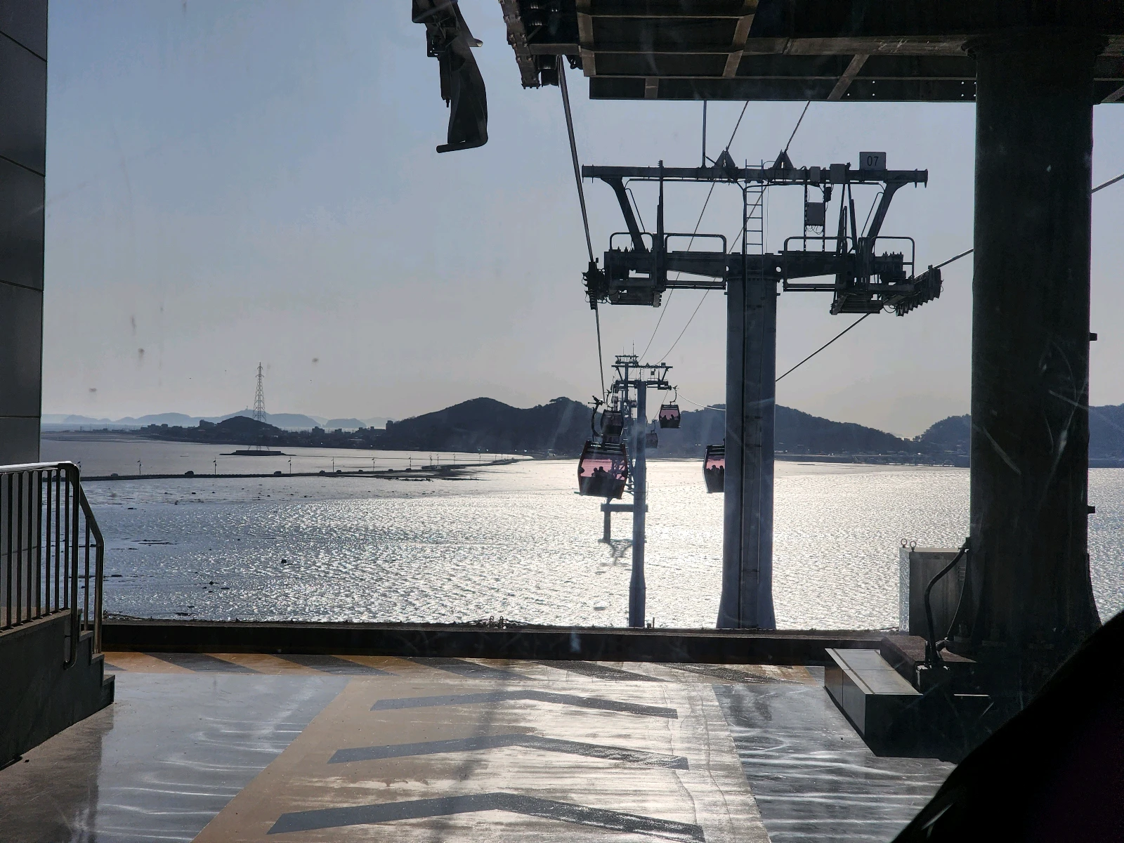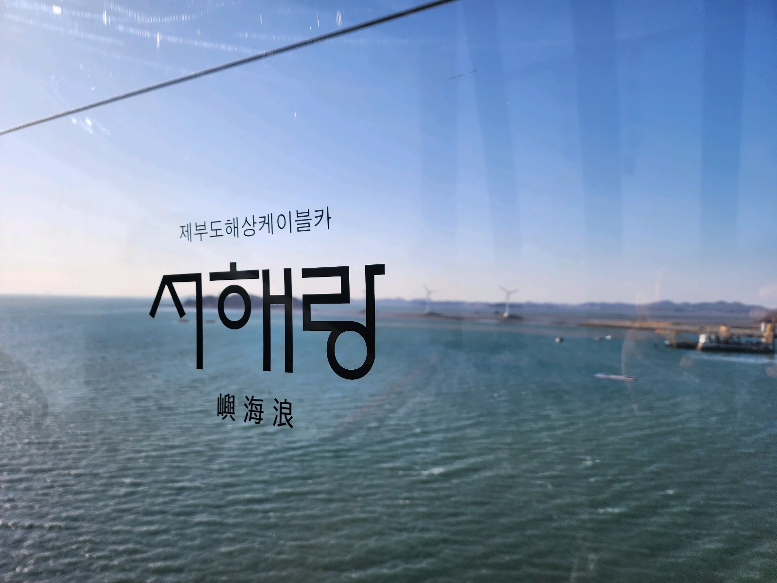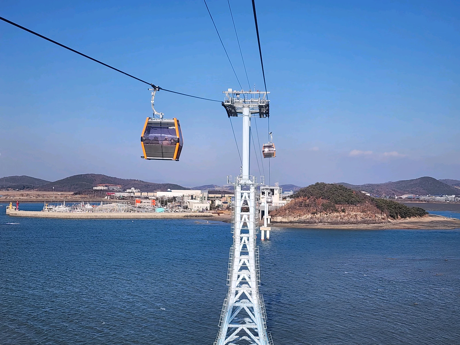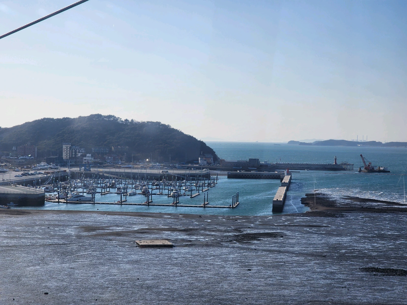 드디어 출발! 오랜만에 케이블카를 타니 설렘이 가득했어요. 썰물 시간대였는데도 바다쪽은 바닷물이 푸르릅니다.
