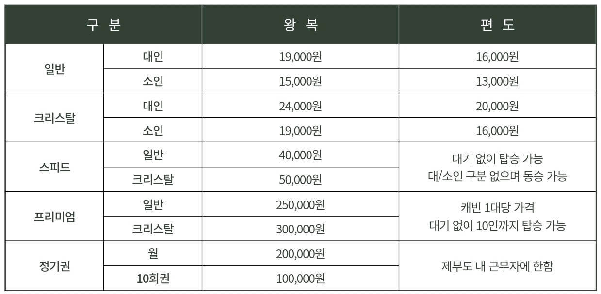 ※ 편도 탑승권은 발권한 정류장에서만 탑승이 가능합니다.