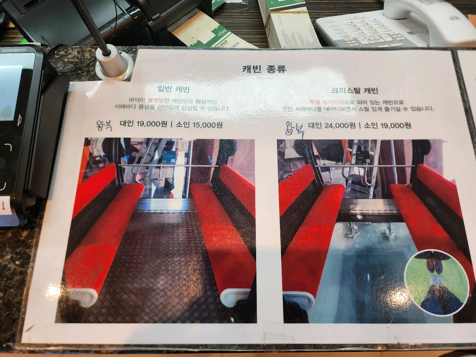 케이블카의 캐빈은 두 종류가 있습니다. 일반 캐빈과 크리스탈 캐빈인데요, 크리스탈 캐빈은 바닥이 투명한 유리로 되어 있어서 좀 더 스릴을 느낄 수 있습니다. 단, 캐리어나 유모차 등과 함께 탑승할 경우에는 일반 캐빈만 이용 가능합니다.