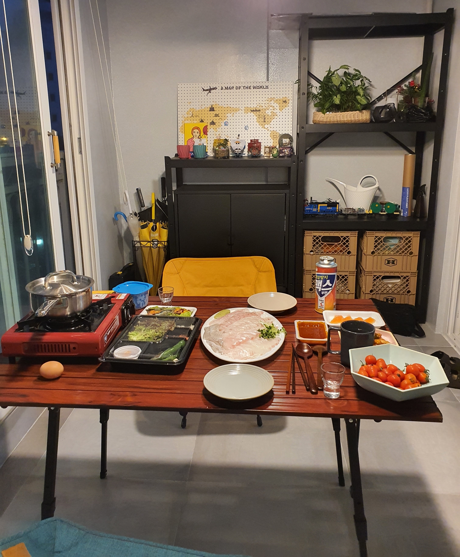이렇게 거하게 차려놓고, 주로 회(대광어!)를 먹었습니다. 그런데 막상 여름이 되니까 더워서 식탁에서 주로 먹게 됩니다. 하하...