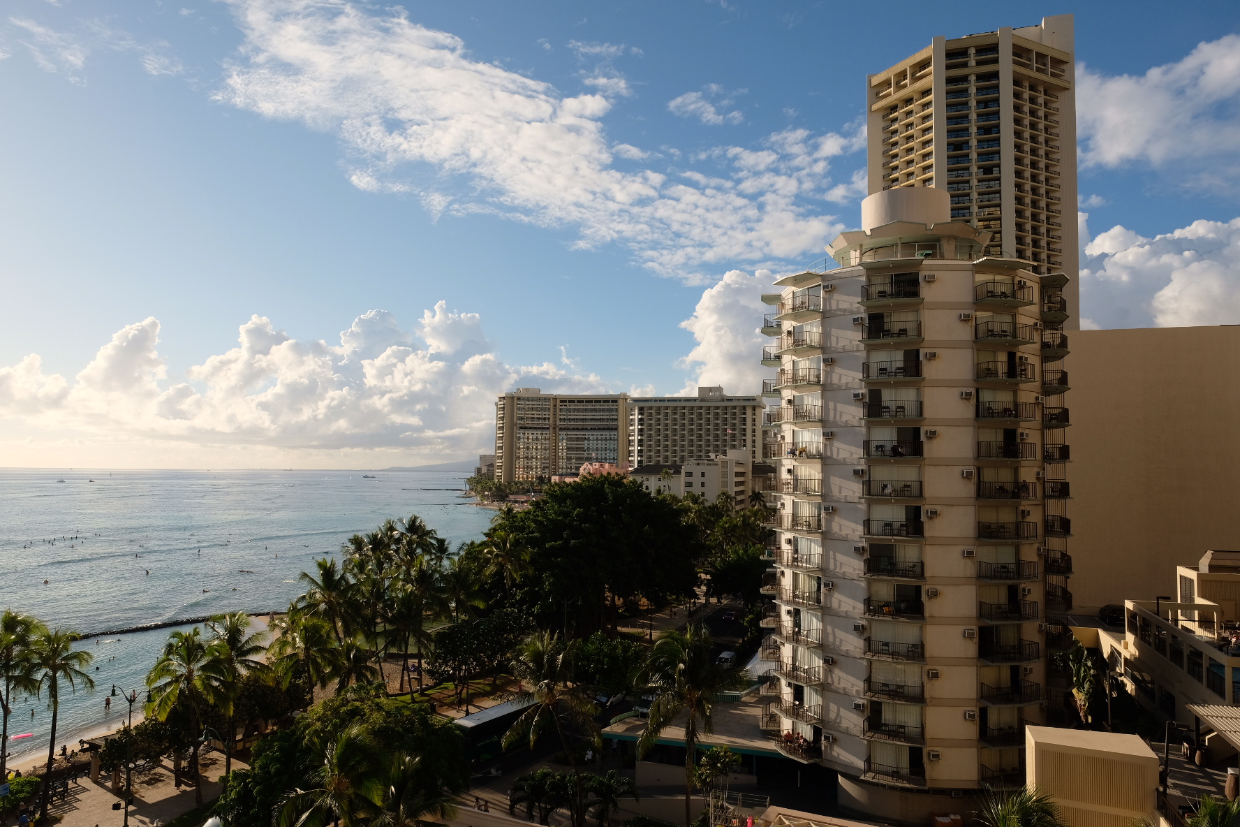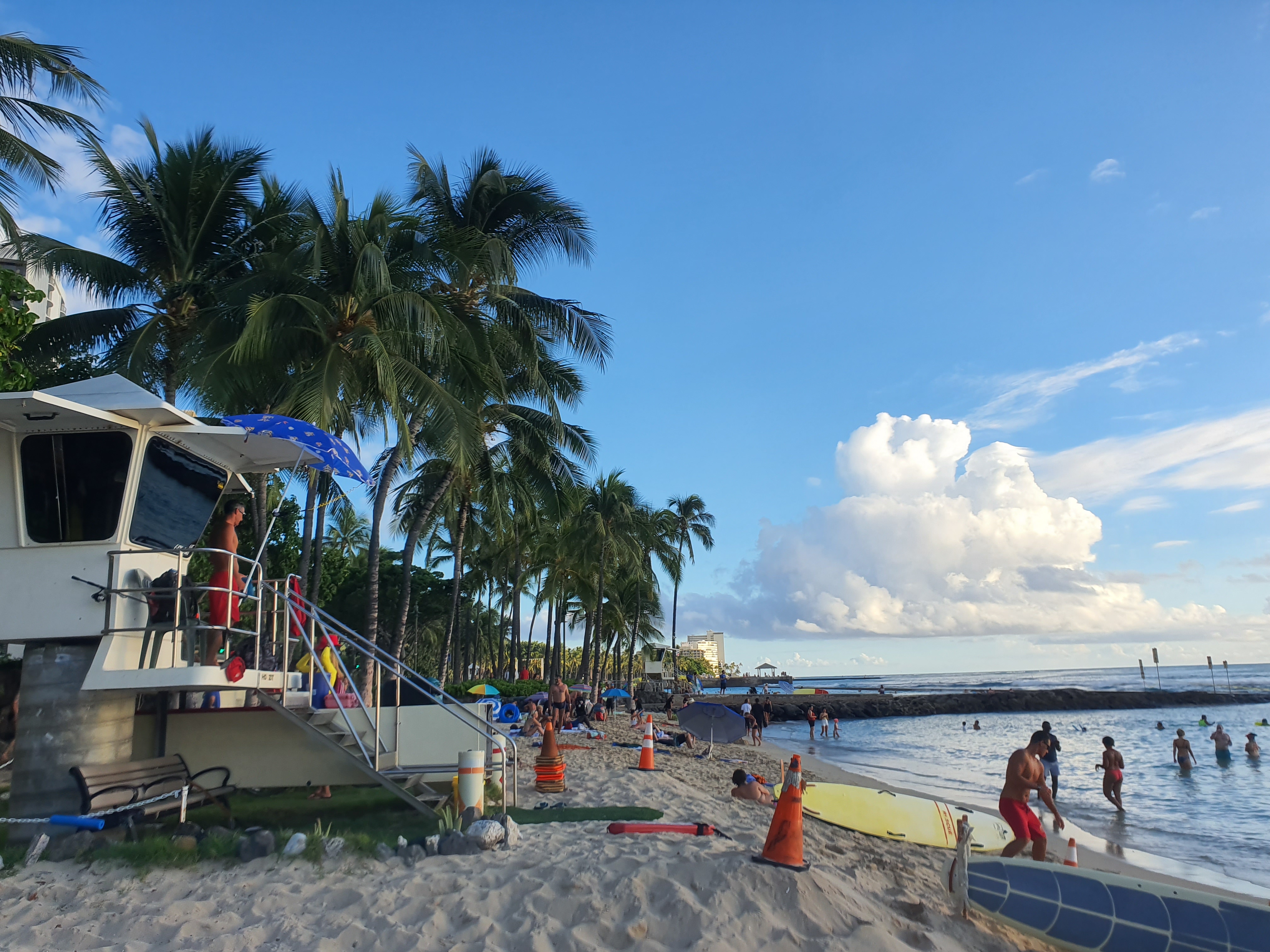 마우이섬에서 오아후로 이동한 것 외에는 별로 한 것도 없는데, 벌써 오후 5시가 되어버렸어요. 잠깐이라도 수영을 즐기러 와이키키 해변으로 갔습니다.