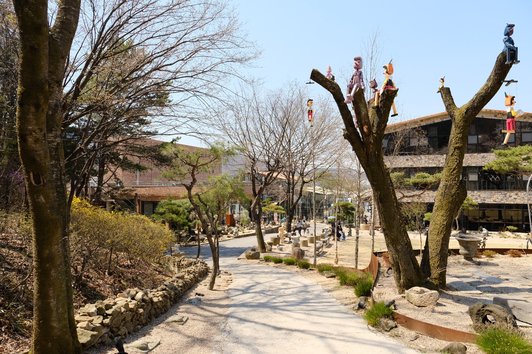 야외로 나와서 산책로를 따라 잠깐 걸었어요. 이제 막 봄이 온지 얼마 안 되어 나뭇가지는 조금 휑하지만, 커다란 벚꽃나무에 벚꽃이 흐드러지게 피어있었어요. 봄에 방문하시면 꼭 산책로를 돌아보시는 것을 추천합니다.