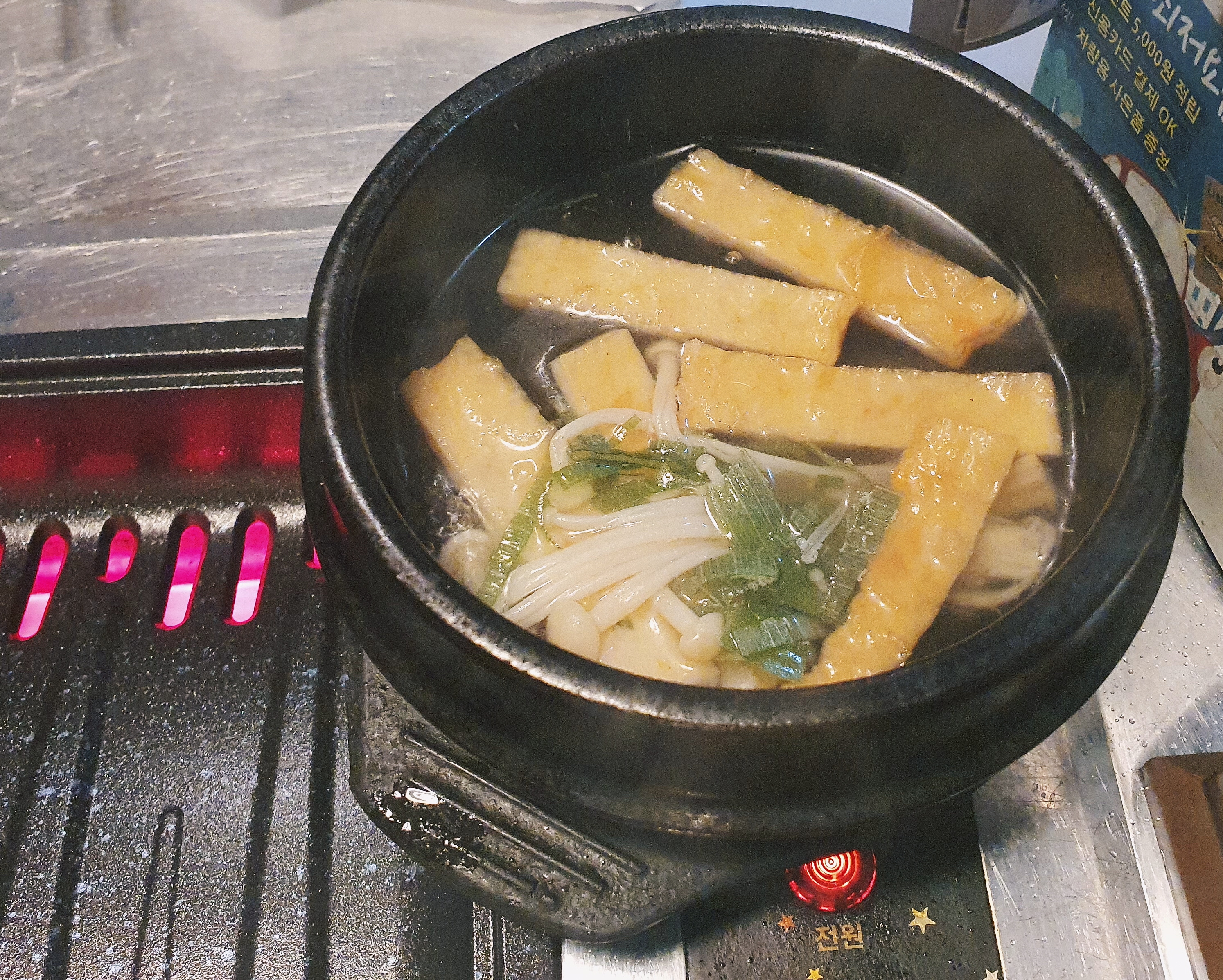 뚝배기에 담겨있는 오뎅탕도 나왔습니다. 고춧가루가 살짝 들어간 칼칼한 맛이 좋았습니다.