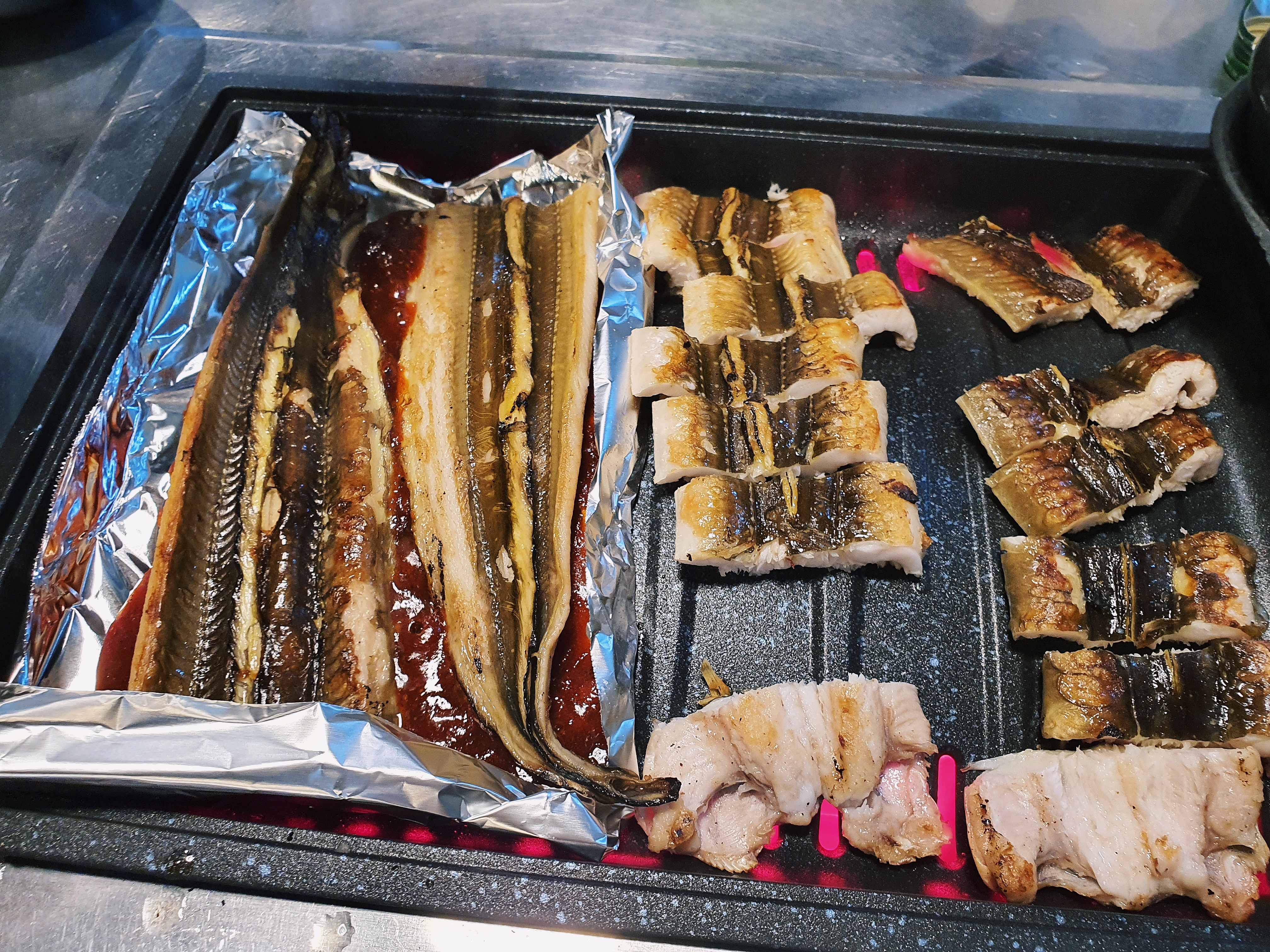 민물장어에 비해서 확실히 쌉니다. 특대 2개를 각각 소금과 양념구이로 주문했습니다.