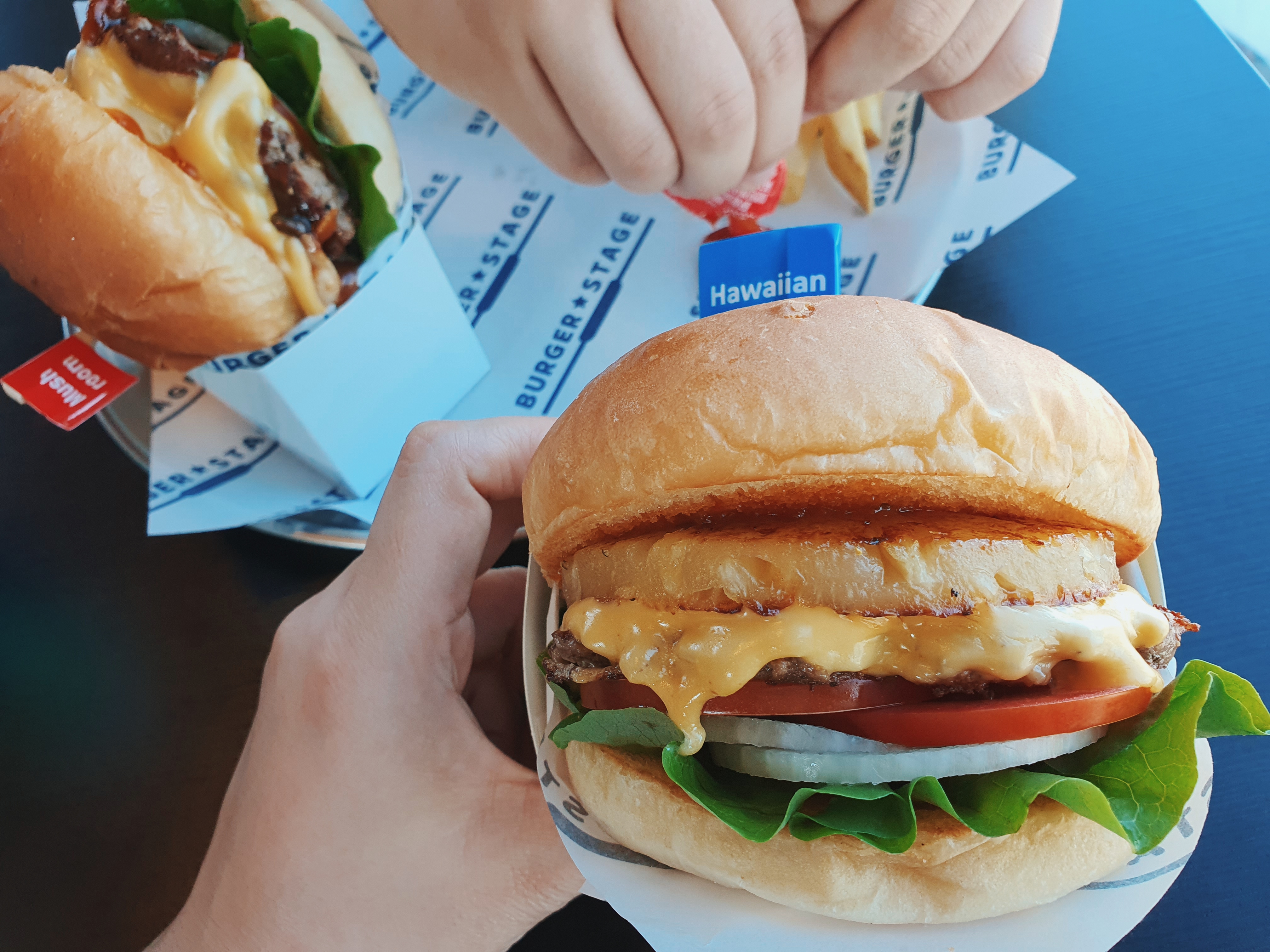 하와이안 버거에는 파인애플이 이렇게 크게 들어있어요. 남편은 파인애플은 맛이 너무 강하다고 파인애플이 들어간 피자나 햄버거는 좋아하지 않지만, 저는 구워진 파인애플을 정말 좋아합니다.