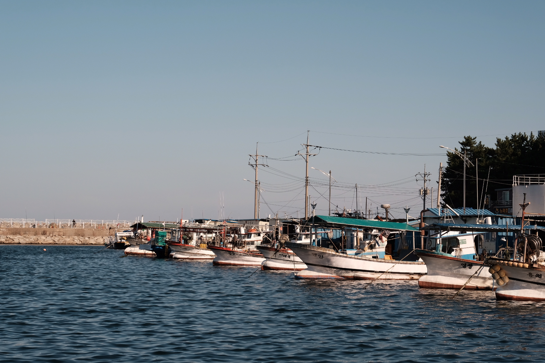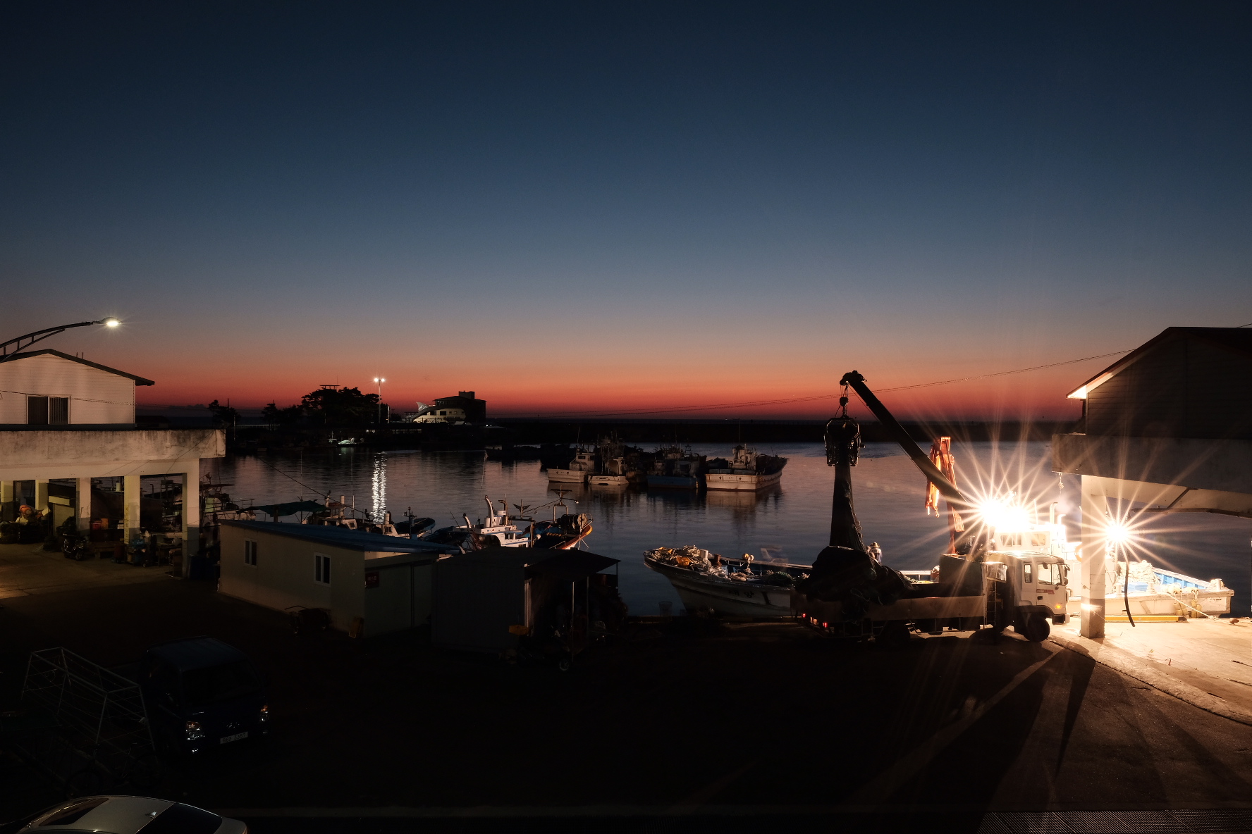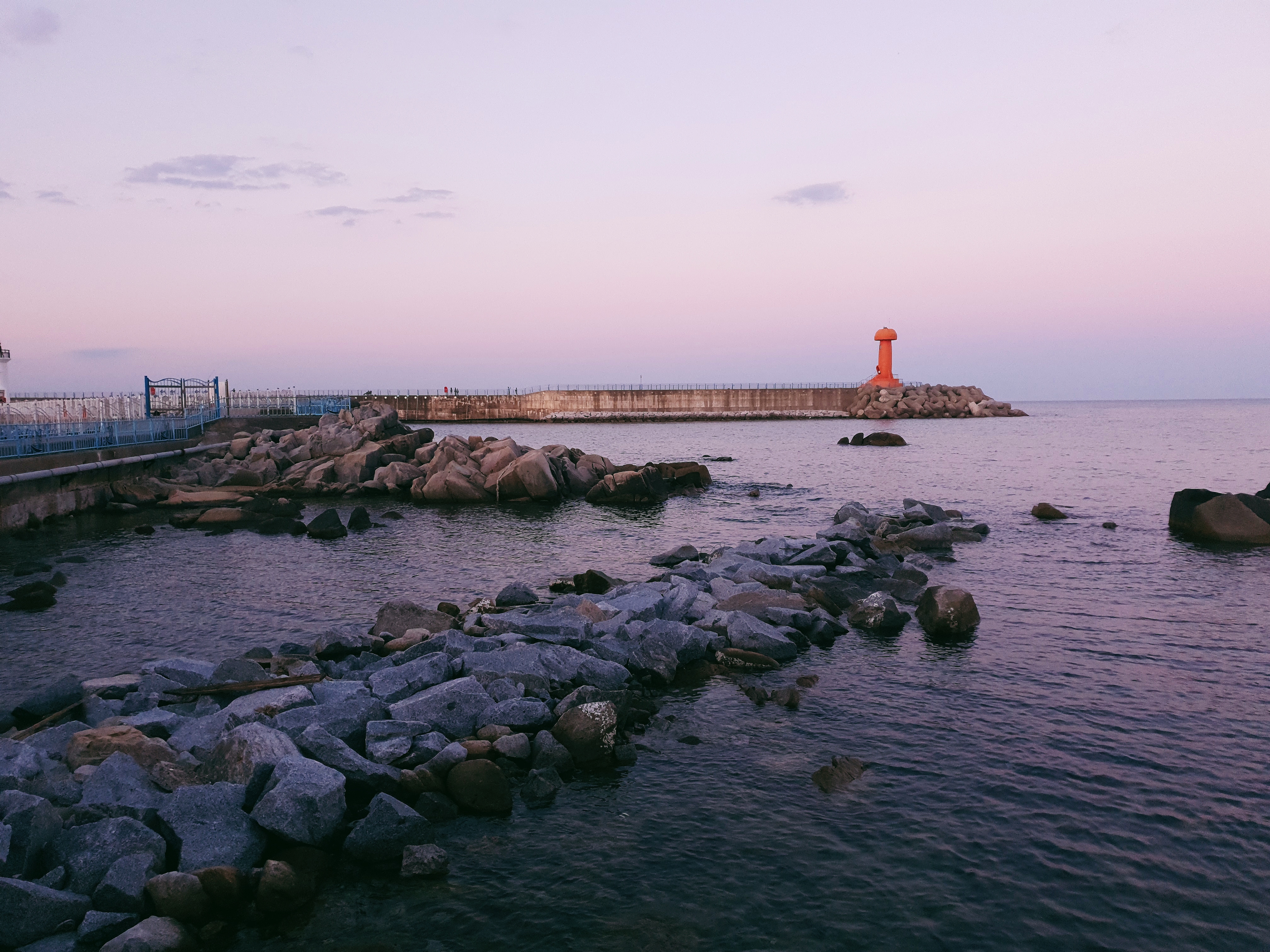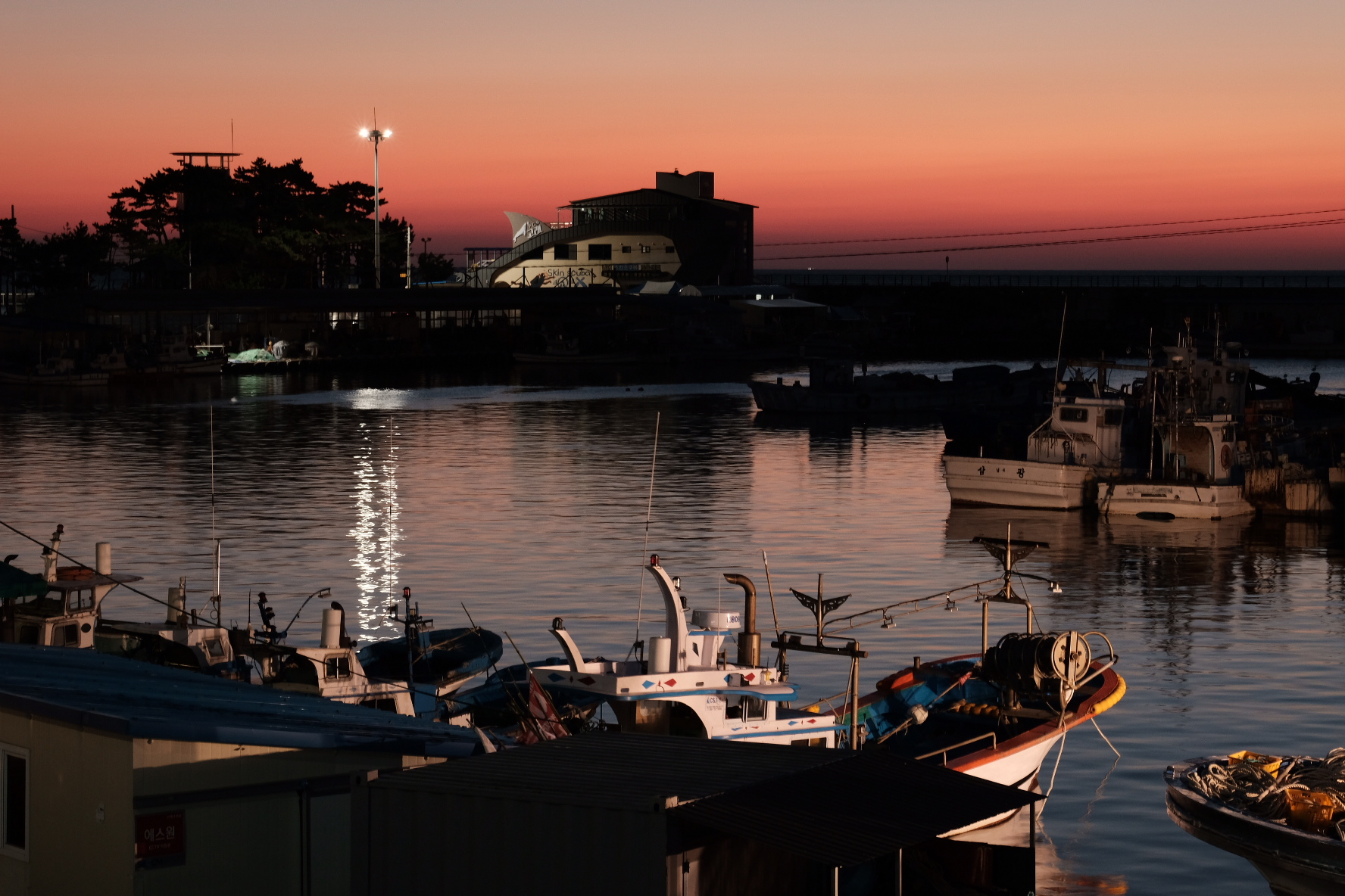이른 새벽 어디선가 들려오는 시끄러운 소리에 잠에서 깼습니다. 이 숙소의 한가지 단점이라면, 조업을 나간 어선들의 새벽 뱃소리가 다소 시끄럽다는 점이에요. 남애항은 아침잠을 푹 주무시고 싶은 분들에게는 다소 적합하지 않은 여행지일 수도 있습니다. 그래도 덕분에 새벽의 멋진 풍경을 볼 수 있어서 저는 좋았긴 합니다. 다시 잠들기에는 하늘과 풍경이 정말 예뻤어요.