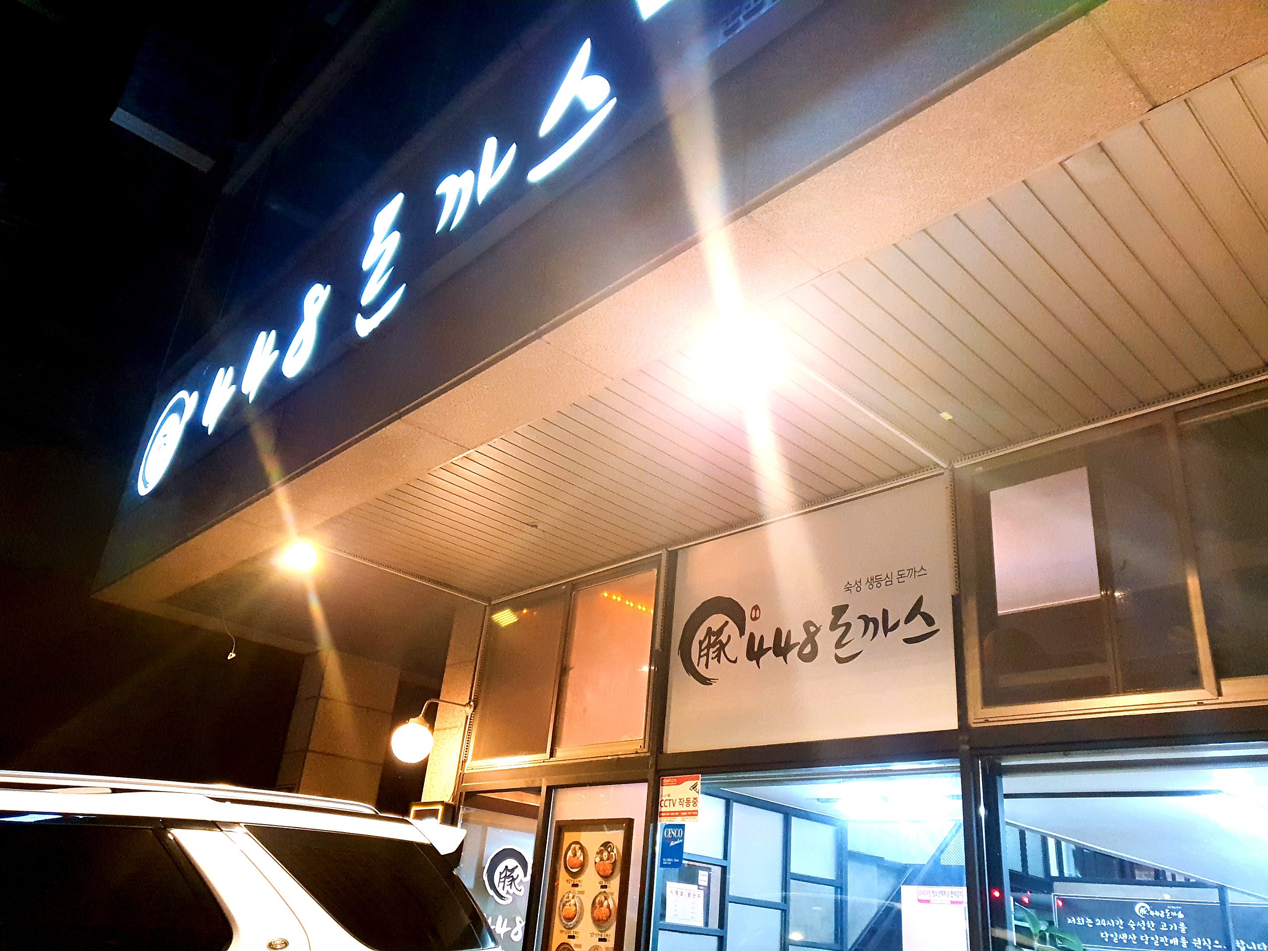 도드람한돈 인증점입니다. 국내산 생등심을 48시간동안 숙성한다고 해요. 그래서 돈까스 집 이름이 448인 것 같습니다. 4가 2번 붙는 이유는 잘 모르겠지만요^^;
