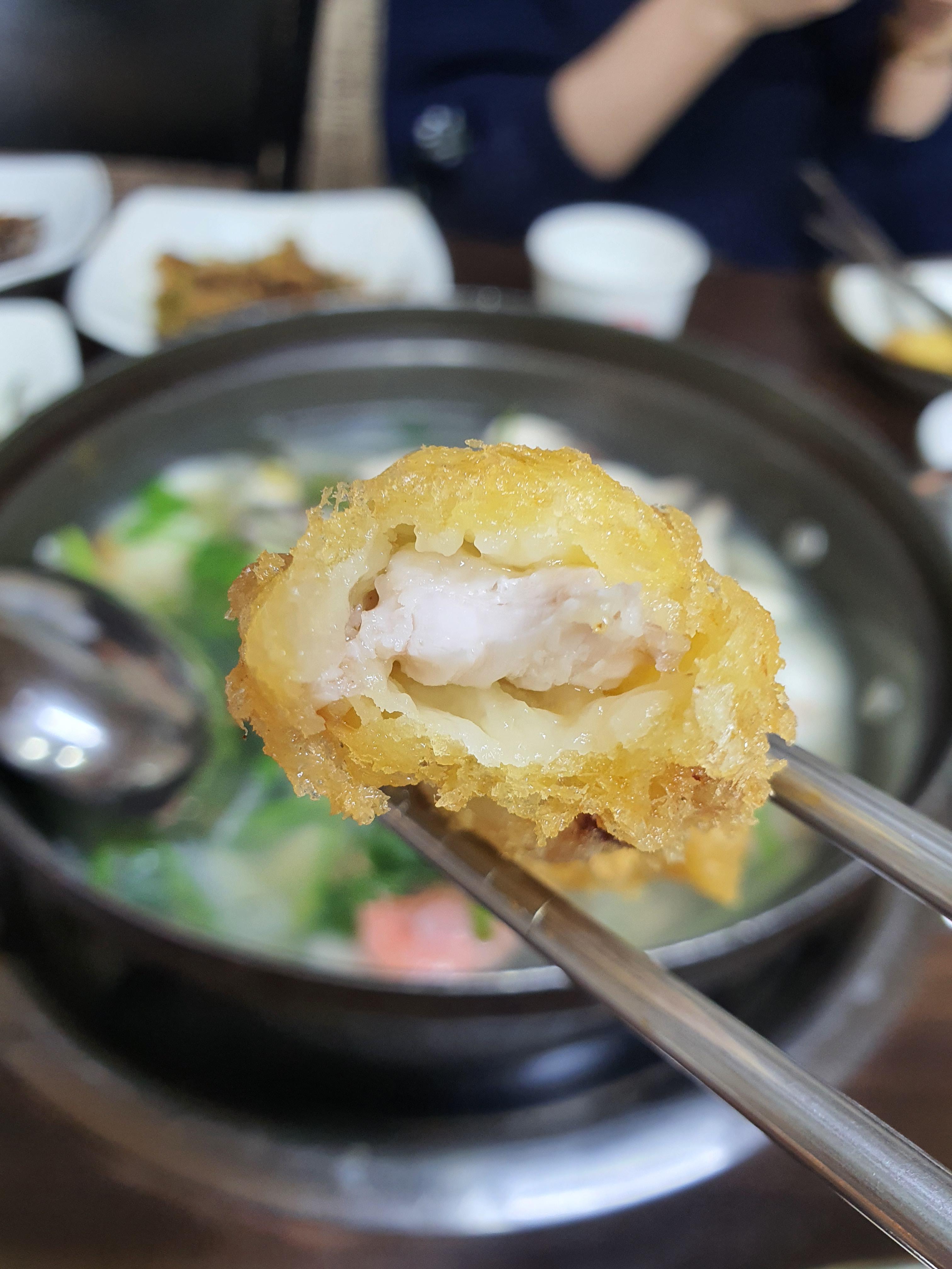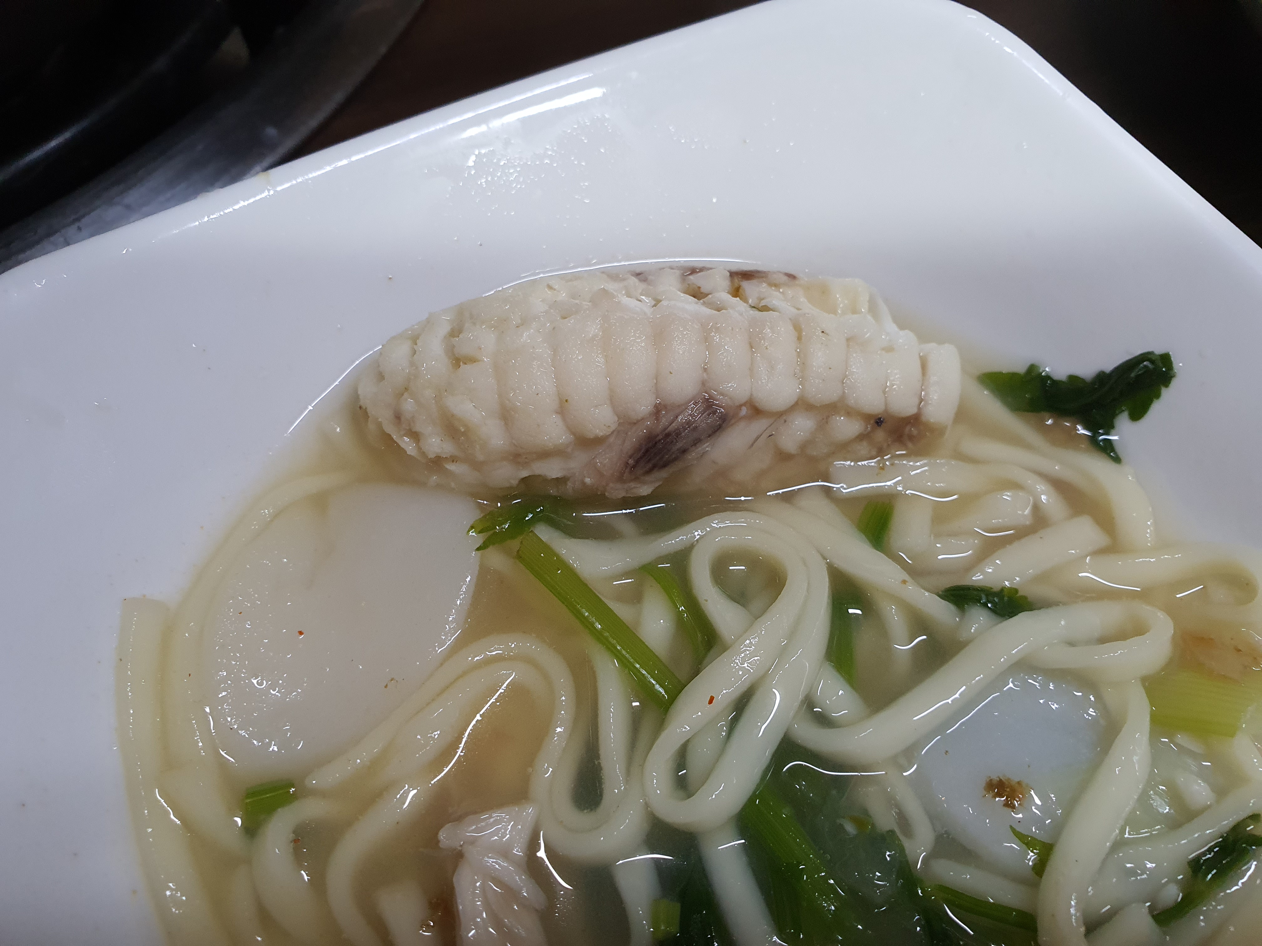 복어가 통으로 들어있어서 정말 컸어요! 그런데 국자로 뜨다가 으스러져서 사진을 제대로 찍지 못했네요. 국물도 시원하고, 면발도 탱글탱글합니다. 부모님 나이대 분들이 좋아하실 건강한 맛입니다.