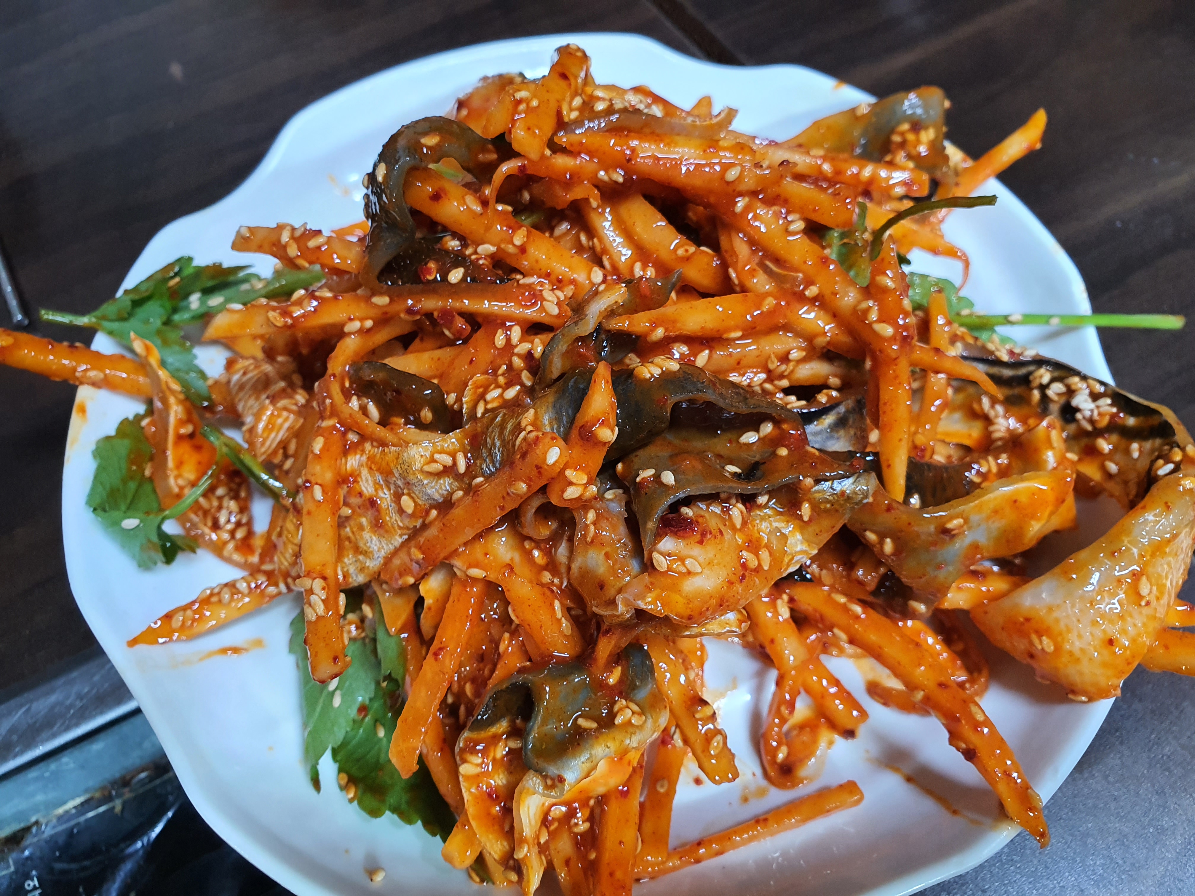 새콤한 맛의 복껍질무침이 나왔습니다. 기름진 음식만 먹어서 입맛이 없던 참에, 식욕을 확 돋우어주는 음식이었습니다. 애피타이저로 아주 훌륭했습니다.