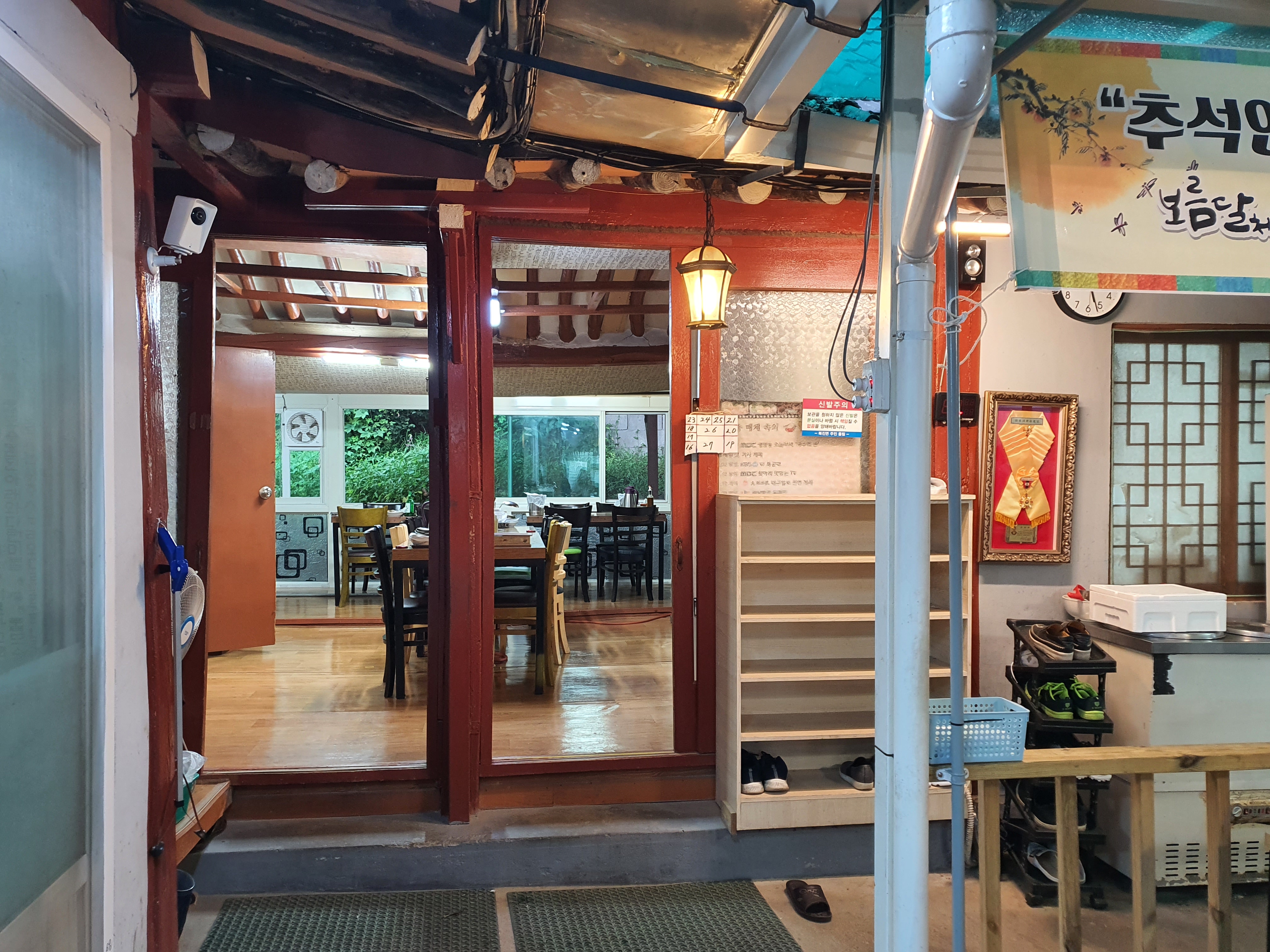 추석 명절인데다 저녁시간 보다 조금 일찍온 편이어서 식당에 사람이 많지 않았습니다. 옛날 한옥 구조의 집을 개조해서 만든 것 같습니다. 중앙 마당 및 각 방마다 식사 테이블이 마련되어 있어요.