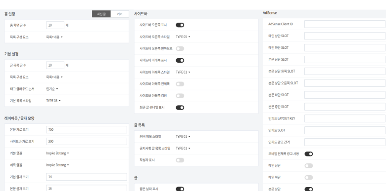 처음에 데모 블로그를 봤을 때 참 깔끔하고 예뻐서 기억에 남았는데, 결국 구입까지 이어졌네요. 제 소감은... 진작 구입할 걸 그랬다! 싶을 정도로 마음에 들었습니다. 블로그의 여러 가지 설정을 쉽게 바꿀 수 있고, 애드센스를 붙이는 것도 정말 쉬워요. 특별한 경우가 아니라면 html과 css를 직접 건드릴 필요가 없습니다.